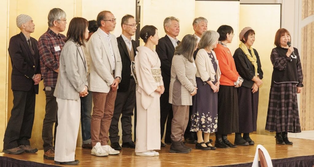 ステージに幹事団(当初からのメンバー及び当日の受付応援メンバー)が上がり、各自の短い